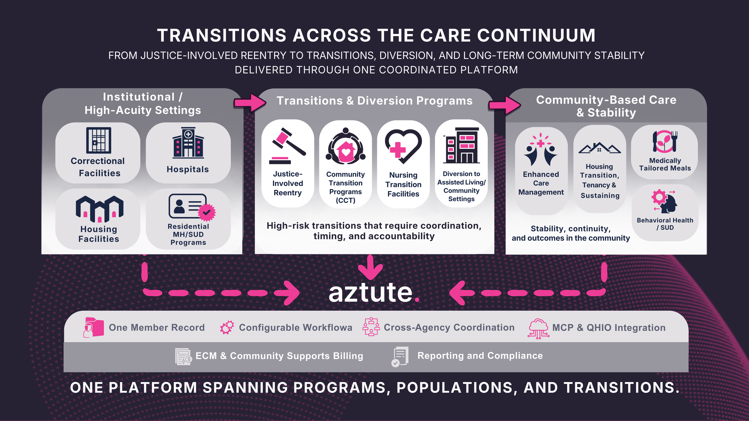 Aztute is a modern, one-stop platform designed to support complex transitions across all CalAIM programs, including ECM, Community Supports, and other community-based programs.